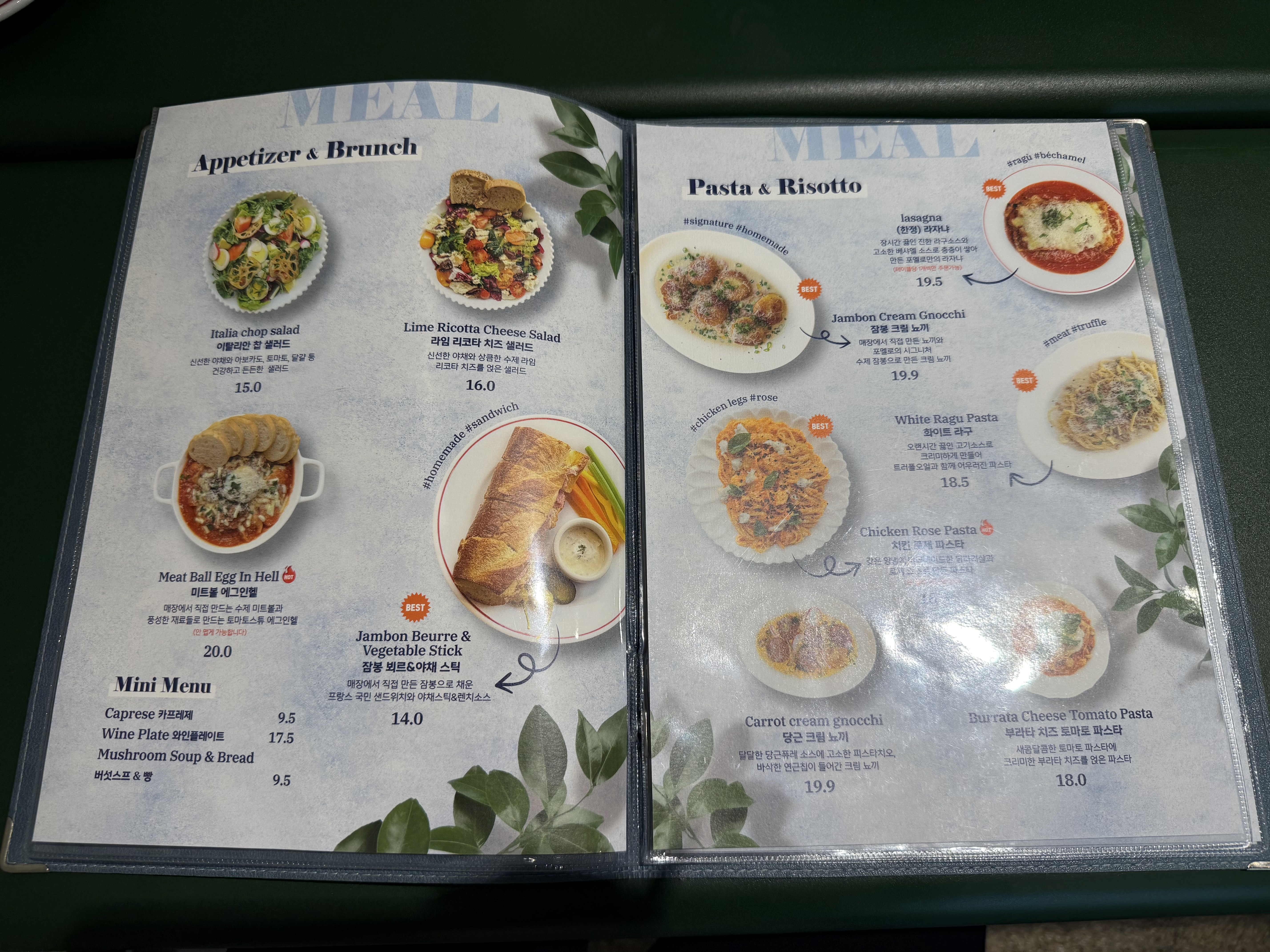 뇨끼, 리소토 등 식사 메뉴도 있습니다!!